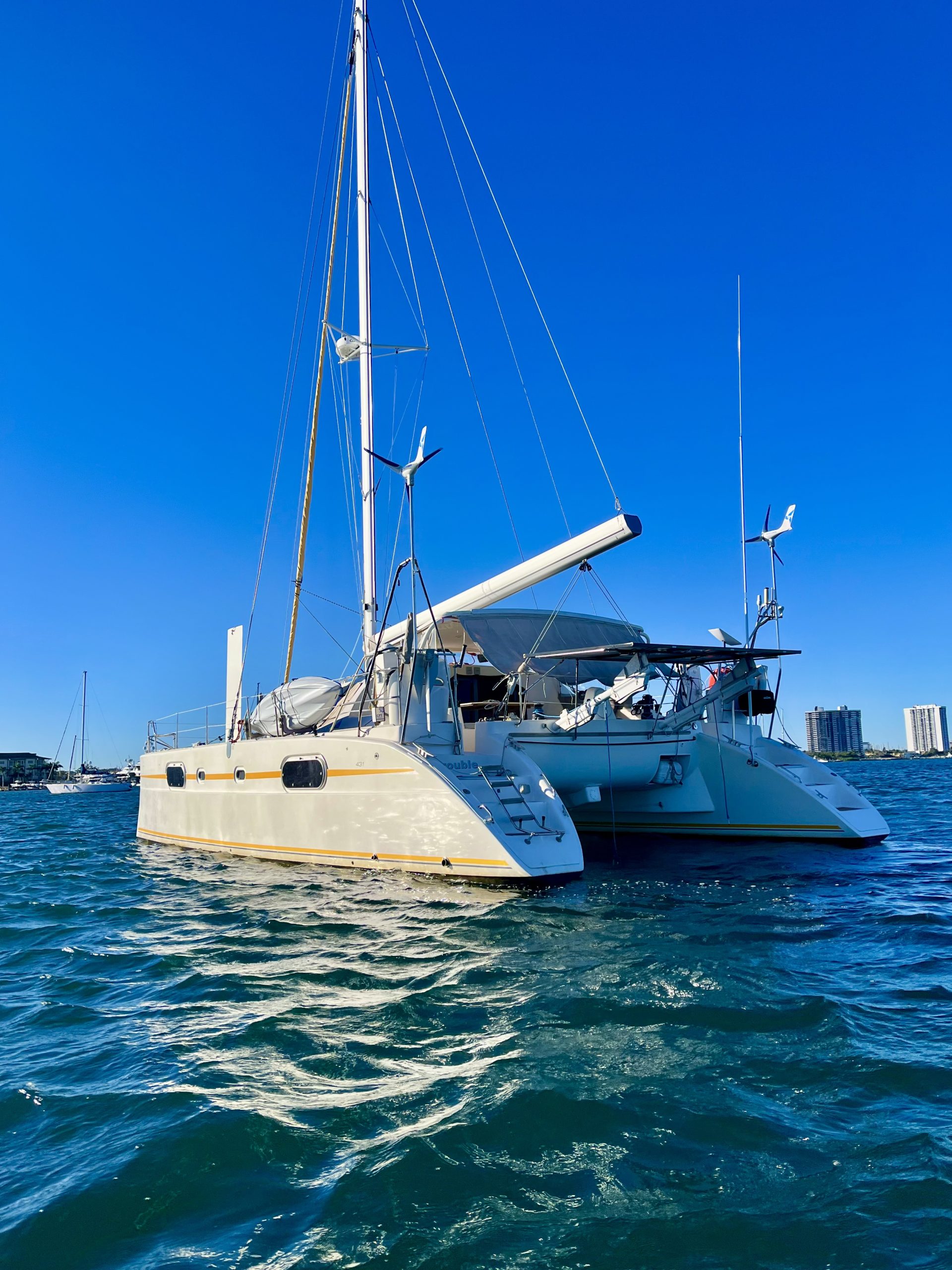 1315 — Anchor down in West Palm Beach. I’ll hang here for the next good weather window to cross to the Bahamas. Planning to fuel up at Pickle Rick’s barge and stock up at what might be Florida’s nicest Publix